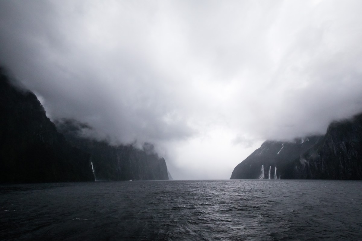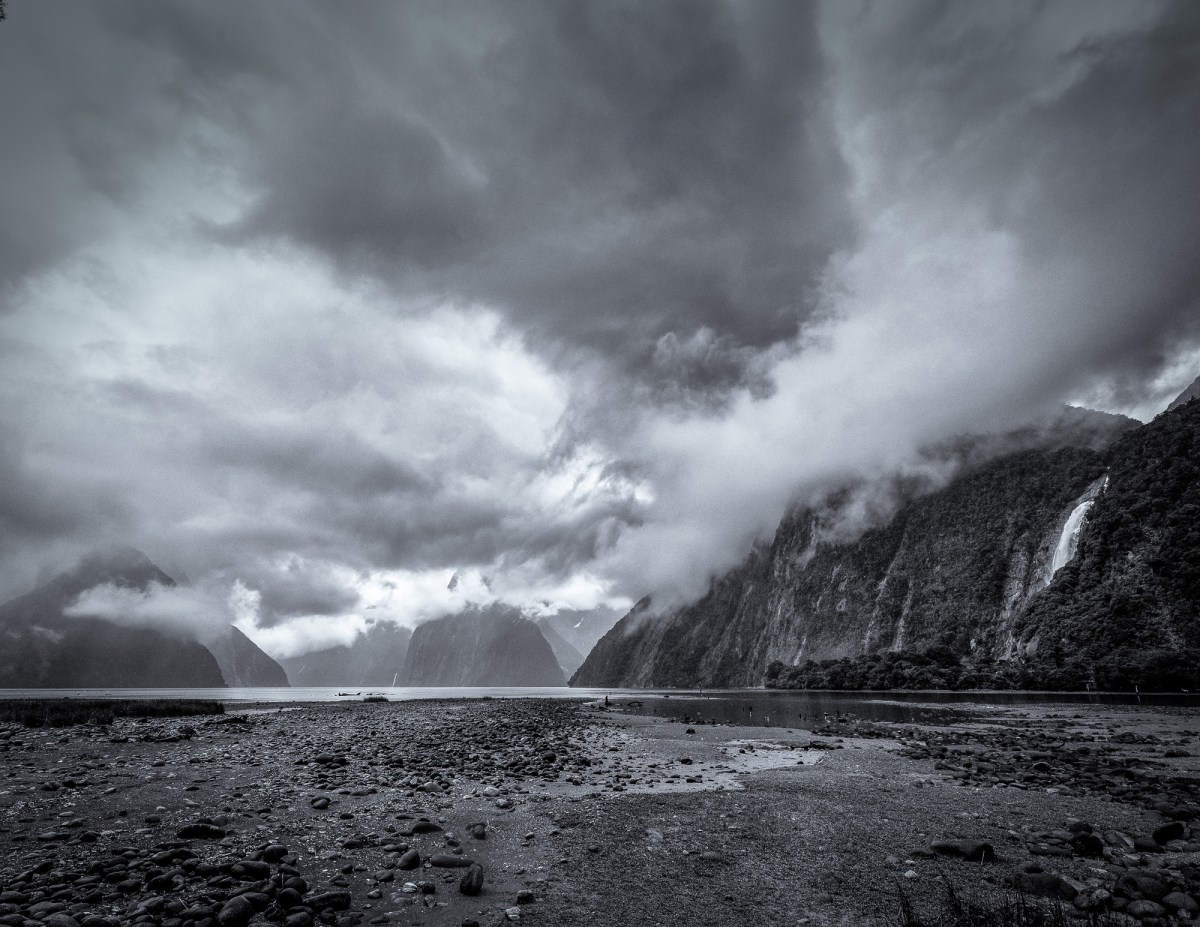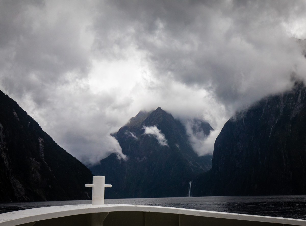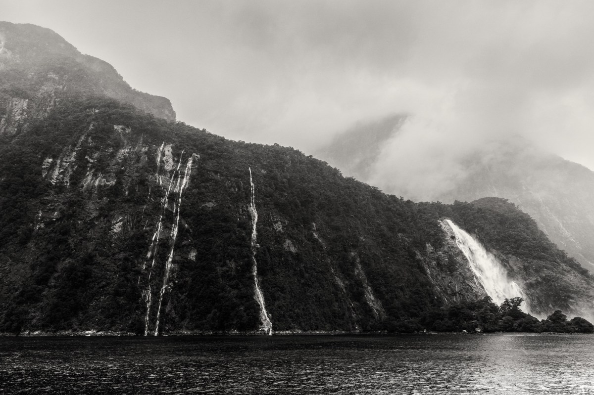 Its hard to capture the grandeur of Milford Sound but hopefully some of these images might begin to do it justice. The first image includes a tour boat in the distance and that helps to illustrate the magnitude of the surrounding mountains and unending waterfalls.