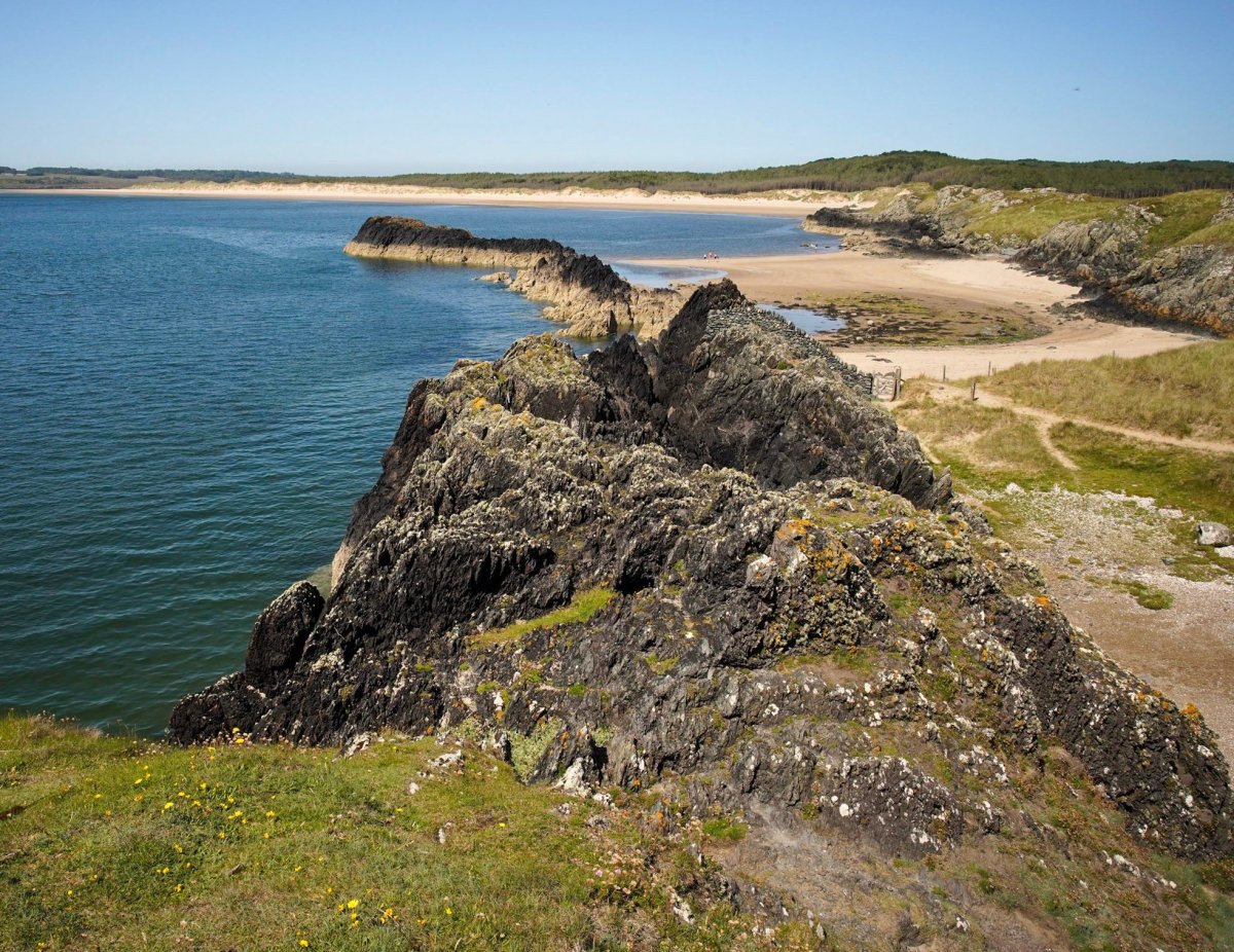 Llanddwyn Island is situated near the southern entrance to the Menai Strait and became important in the shipping of slate. A beacon was built at the tip of the island to provide guidance to ships and another more effective lighthouse was built nearby in 1845. The older lighthouse has now returned to service after a modern light was placed on top